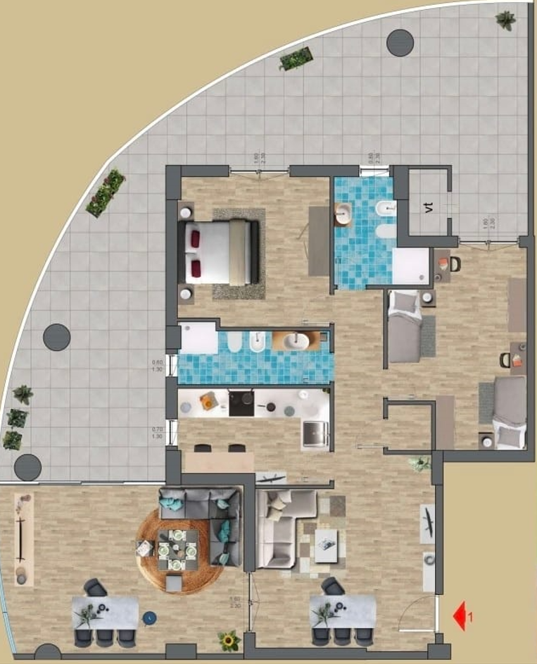 In zona levante, in tranquillo complesso residenziale, vendesi appartamento di nuova costruzione al quinto piano di 96 mq. Gli interni sono personalizzabili, in base alle esigenze dell'acquirente. L'immobile è realizzato con impianti di ultima generazione che garantiscono risparmio energetico e rispetto per ambiente. Completa 'immobile un' ampia veranda. Possibilità di acquistare un box auto.